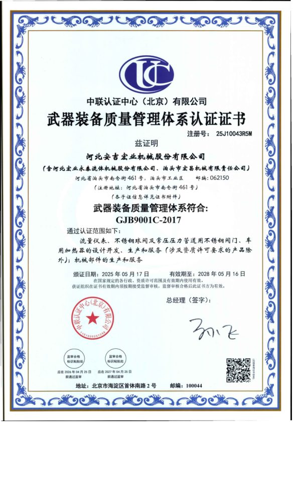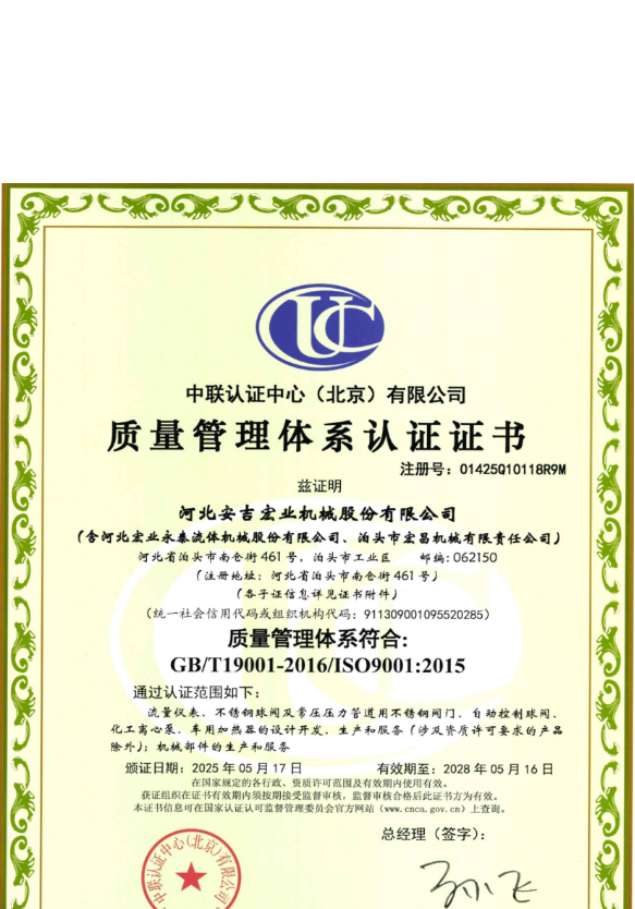 河北宏業(yè)永泰流體機械股份有限公司(原泊頭儀表總廠),生產(chǎn)流量儀表產(chǎn)品有三十多年的歷史。參加了節(jié)流裝置國家標(biāo)準(zhǔn)GB/T2624-1981的起草工作。公司占地12萬平方米,注冊資金3500萬元。主要產(chǎn)品有節(jié)流裝置、儀器儀表、各類不銹鋼閥門、各種化工離心泵。公司取得了ISO9001:2015質(zhì)量體系認(rèn)證、挪威船級社CE認(rèn)證、出口產(chǎn)品Emark認(rèn)證、特種設(shè)備制造許可證等。同時河北宏業(yè)永泰還是中石化物資供應(yīng)商網(wǎng)絡(luò)成員,取得了中石油、中海油物資供應(yīng)商準(zhǔn)入證,是中國神華集團(tuán)、華電集團(tuán)、大唐集團(tuán)、中廣核等公司合格供應(yīng)商。產(chǎn)品出口日本、阿爾及利亞等國家。